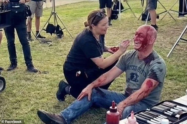 조작된 이미지에는 해변 인근 촬영 현장에서 분장사가 한 남성의 얼굴에 가짜 피를 바르는 장면처럼 연출된 모습과 함께, 주변에 피가 담긴 통들이 놓여 있는 모습이 담겼다.