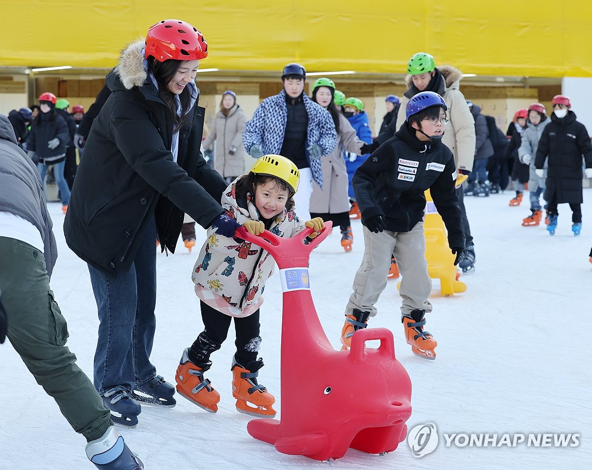 (서울=연합뉴스) 서명곤 기자 = 21일 서울광장 스케이트장에서 시민들이 스케이트를 타고 있다.