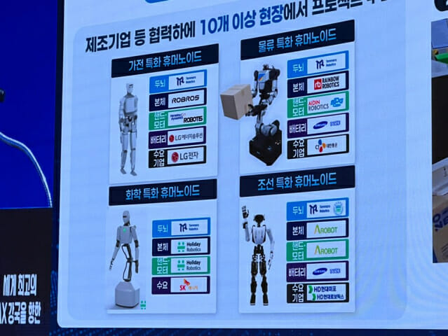 이번 실증 구조는 AI 소프트웨어 기업, 로봇 하드웨어 기업, 핵심 부품·배터리 기업, 수요기업이 분업 형태로 참여하는 생태계형 휴머노이드 모델이다. 산업별 작업 환경과 요구에 맞춰 휴머노이드를 특화하고 실제 현장에서 검증한다.