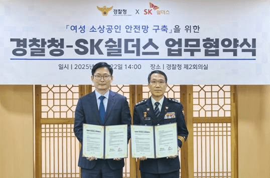 SK쉴더스는 경찰청과 업무협약(MOU)을 체결하고, 여성 1인 소상공인의 안전 강화를 위한 ‘맞춤형 안심보안 서비스’를 지원한다고 23일 밝혔다.