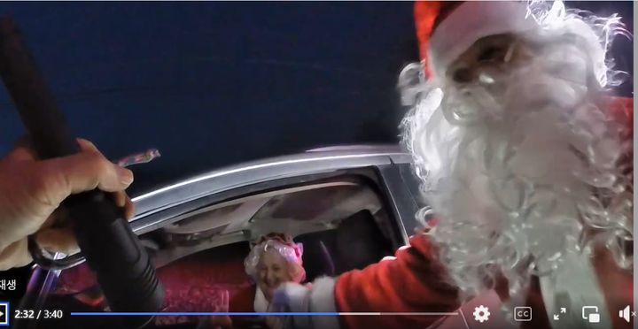 [서울=뉴시스]김혜경 기자, 유지학 인턴기자 = 미국에서 산타클로스로 분장한 노부부가 과속으로 경찰에 적발되는 해프닝이 벌어졌다.