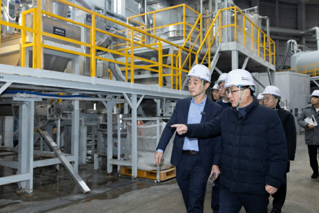 김 장관은 투명 페트병을 다시 식품용기 재생원료로 활용하는 ‘보틀 투 보틀’ 순환 구조를 직접 확인하고, 향후 투명페트병 재생원료 사용 의무화 비율 상향에 대비한 민간 재활용 사업자들의 준비 수준과 공급 여건을 점검했다.
