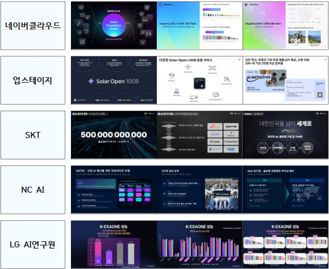 이번 프로젝트에는 네이버클라우드, 업스테이지, SK텔레콤, NC AI, LG AI연구원 등 5개 정예팀이 참여했다. 각 팀은 독자 AI 모델 개발을 목표로 1단계 연구·개발 성과를 공유했다.