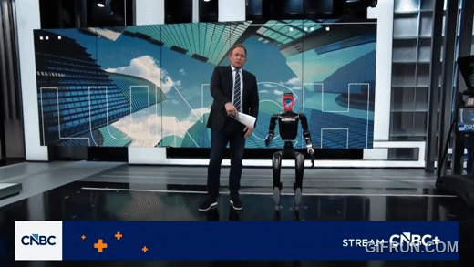 유니트리 휴머노이드로봇이 CNBC방송에 출연한 모습 (영상=CNBC 유튜브)