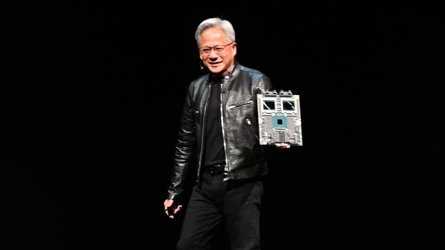 블랙웰 GPU를 공개한 젠슨 황 엔비디아 CEO. (사진=지디넷코리아)