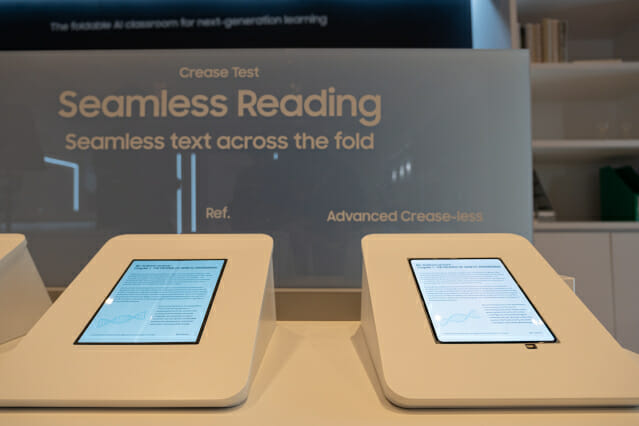 삼성디스플레이가 공개한 차세대 폴더블 패널. 기존 제품 대비 주름(크리즈)의 깊이가 얕아져, 접히는 부분의 빛 반사나 그림자로 인한 화질 저하 정도에 눈에 띄게 적은 것을 확인할 수 있다(사진=삼성디스플레이)