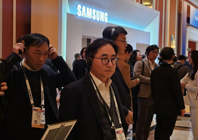 6일(현지시간) 장덕현 삼성전기 대표이사 사장은 미국 라스베이거스 윈 호텔에서 열린 ‘CES 2026’ 삼성전자 전시장에서 기자들과 만나 FC-BGA 증설 계획에 대해 “조심스럽게 생각해 보고 있다”고 밝혔다.