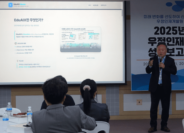 이 자리에서 박태희 우정인재개발원 원장은 “EduAIX 특강을 통해 기존 PDF·PPT 중심 교육자료를 AI 기반 웹페이지 형태로 전환해 실시간 업데이트가 가능한 살아있는 학습 생태계로의 전환이 필요하다”고 강조했다.