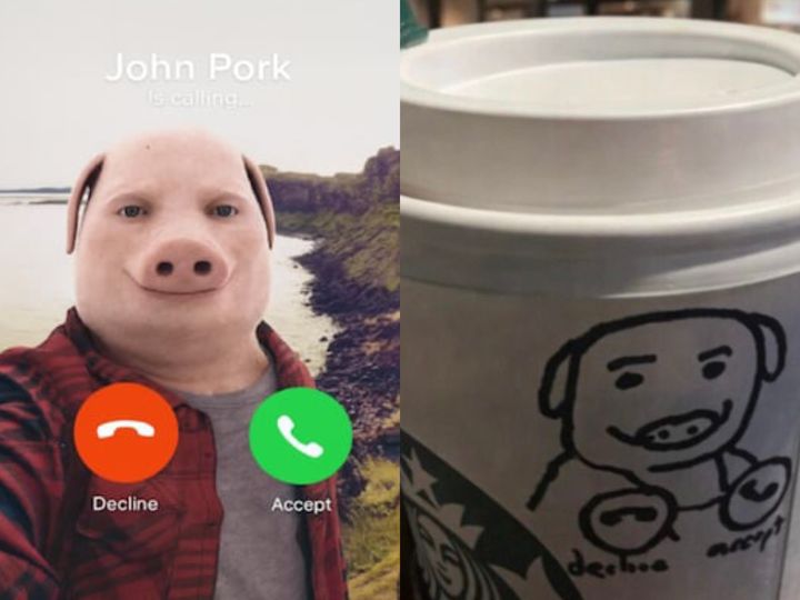 ‘존 포크’는 인간형 옷차림의 돼지 캐릭터로, 돼지에게서 전화가 걸려오는 것 처럼 꾸미는 밈이다.