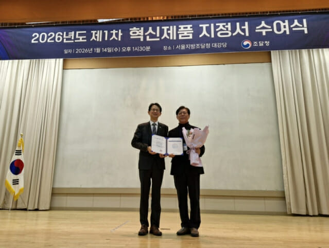 써니웨이브텍이 2026년도 제1차 혁신제품 지정서 수여식에서 ‘금속표면 자기장통신 IoT 안전관리플랫폼’이 혁신제품으로 지정, 조달청장으로부터 인증서를 수여 받았다고 밝혔다.