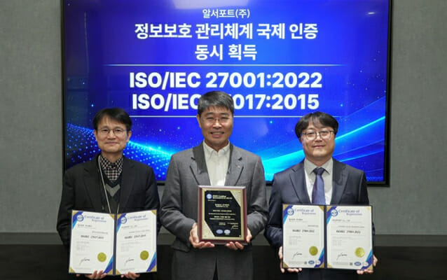 AI기반 원격솔루션 전문기업 알서포트(대표 서형수)는 정보보안 관리 국제 인증 ‘ISO/IEC 27001:2022’와 ‘ISO/IEC 27017:2015’를 동시에 획득했다고 15일 밝혔다.