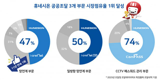 회사에 따르면, 휴네시온은 2025년 망연계 부문에서 47%를 기록, 2015년부터 11년 연속 망연계 시장 1위를 달성했다. 작년 정부의 정보보호 종합대책 발표와 국가망보안체계(N2SF) 보안 가이드라인 발표 등 정책 전환 흐름에 맞춘 제품을 공급, 망연계 시장 지위를 공고히 했다고 진단했다.