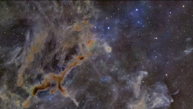 마이어는 천체사진 웹사이트 ‘아스트로빈(Astrobin)’에 사진을 공개하며 “가장자리로 갈수록 장면이 희미한 반사 성운 형태로 바뀐다”고 설명했다. 그는 이어 “이곳에서는 먼지가 주변 별빛을 산란시키기 때문에 눈에 띄며, 그 결과 은은한 푸른빛을 띠는 경우가 많다”고 덧붙였다.