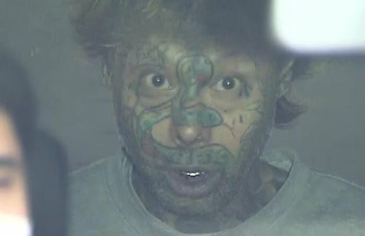 [서울=뉴시스]최현호 기자 = 일본 도쿄의 한 편의점에서 물건을 훔치고 점원을 공격해 체포된 일본인 남성이 독특한 얼굴 뱀 문신으로 현지에서 화제가 되고 있다.