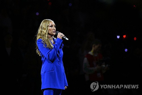 NBA 런던 경기에 앞서 미국 국가 부르는 바네사 윌리엄스[AFP=연합뉴스 제공][AFP=연합뉴스 제공]