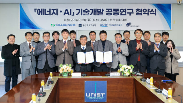 한국수력원자력과 울산과학기술원(UNIST) 컨소시엄은 20일 울산 UNIST 본관 대회의실에서 ‘에너지·AI 기술개발 공동연구’ 협약을 체결했다.