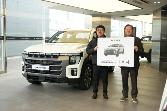 KGM은 지난 19일 KGM 익스피리언스 센터 일산에서 KGM 권교원 사업부문장(전무)을 비롯한 임직원들이 참석한 가운데 ‘무쏘’ 1호차 전달식을 진행했다.