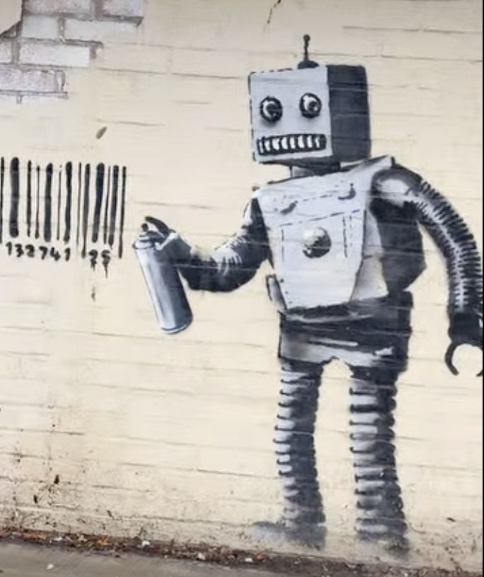 이 작품은 뱅크시가 2013년 전 세계를 돌아다니며 그린 바코드 벽화 중 하나로 추정된다. 작품에는 로봇이 스프레이 프린트를 들고 바코드를 그리는 모습이 담겨있는데, 루오코 가족은 이 벽화를 ‘미스터 로봇’이라고 불렀다.