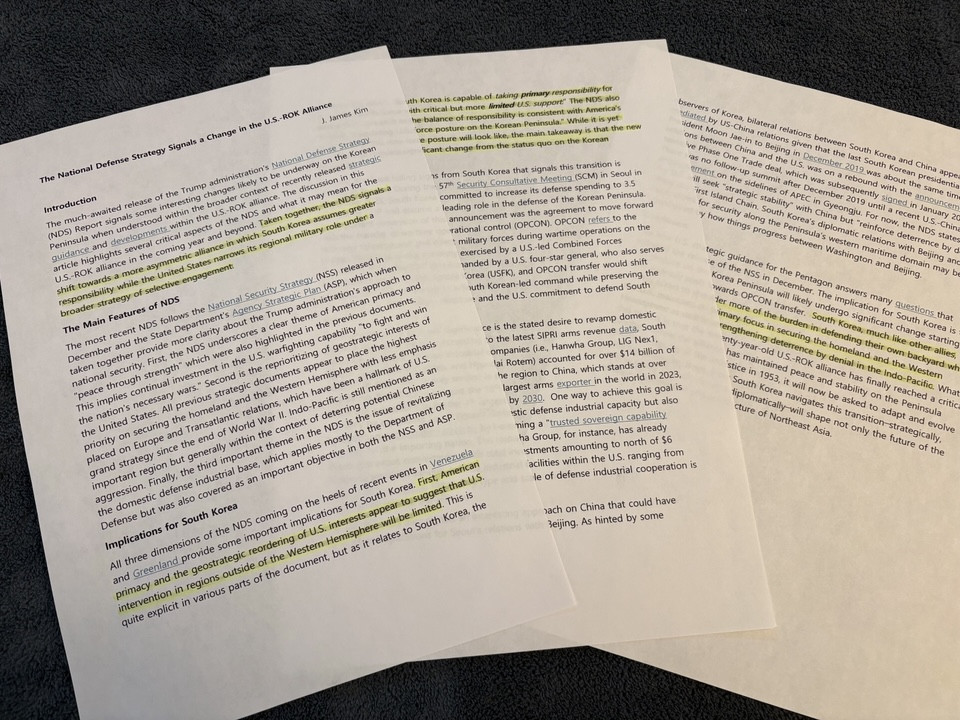 미 국방부가 지난 23일 공개한 NDS에는 “한국은 강력한 군, 높은 수준의 국방 지출, 탄탄한 방위 산업, 의무 징병제를 바탕으로 대북 억제에서 주된 책임을 질 능력이 있다”는 내용이 담겼습니다.