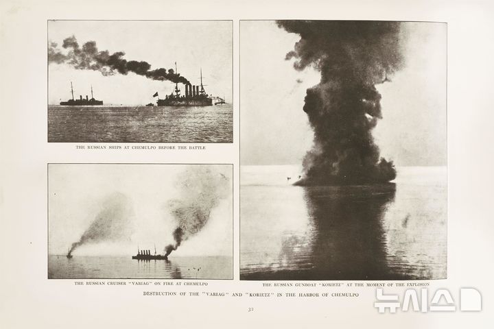 또 이 사진첩에는 러일전쟁의 첫 교전인 제물포 해전의 사진이 수록돼 있다. 1904년 2월 일본 해군은 제물포와 뤼순(旅順)항에서 러시아 함대를 기습 공격하였고, 제물포 해전에서는 러시아 군함 바랴그(Varyag)호와 코레예츠(Koreets)호가 일본 함대에 포위된 끝에 자침(自沈)을 선택하며 전투가 종료됐다.