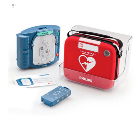 필립스 ‘하트스타트 HS1(HeartStart HS1)’은 기기 자체에 패드를 보관할 수 있는 구조가 장점이며, 성인용과 소아용 패드가 구분돼 있다. 필립스 브랜드 신뢰도를 바탕으로 공공기관과 기업 수요가 많은 제품이다.