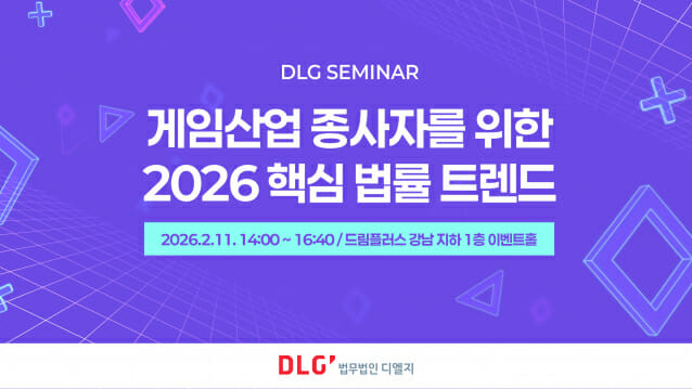 법무법인 디엘지(DLG Law Corporation, 대표변호사 조원희·안희철)는 오는 11일 오후 2시 서울 서초동 드림플러스 강남에서 ‘게임산업 종사자를 위한 2026 핵심 법률 트렌드’ 세미나를 개최한다.