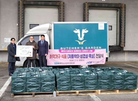 기부 물품은 에이스냉장의 프리미엄 육류 브랜드 부처스가든의 대표 제품인 차돌박이, 삼겹살, 목살 등으로 구성된 육류 100세트다. 이날 기탁된 물품은 용인지역자활센터를 통해 관내 소외계층 100가구에 신속하게 배분돼 이웃들의 풍성하고 든든한 식탁 마련에 도움이 될 예정이다.
