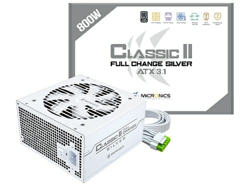 한미마이크로닉스가 9일 데스크톱 PC용 전원공급장치 ‘클래식Ⅱ 풀체인지 800W 80플러스 실버 ATX 3.1 화이트’를 추가 출시했다.