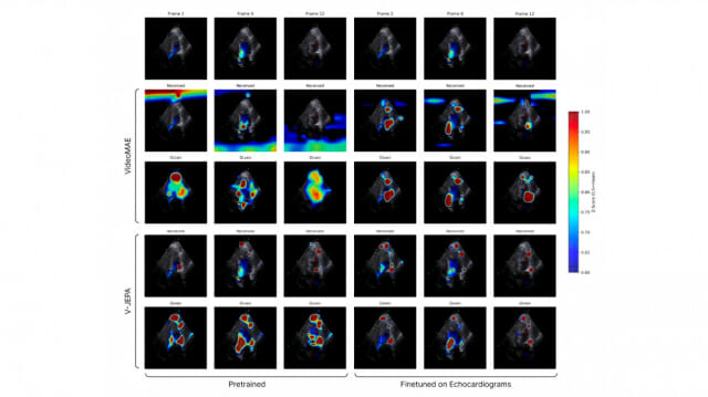 이 결과는 에코제파가 촬영 환경에 따라 변하는 겉모습이 아니라 변하지 않는 심장 구조에 집중했음을 보여준다. 연구팀이 AI가 영상의 어디를 보는지 확인했을 때도 이를 알 수 있었는데, 픽셀 복원 방식의 비디오MAE는 영상 가장자리나 색깔 강도 같은 관계없는 부분을 본 반면, 에코제파는 심장 판막, 심실 벽, 판막이 붙은 테두리 같은 진짜 구조에 정확히 초점을 맞췄다. 더 흥미로운 점은 심장이 뛰는 주기에 따라 초점이 판막에서 심실 벽으로 옮겨가는 등 심장을 하나의 살아있는 시스템으로 이해하는 모습을 보였다는 것이다.