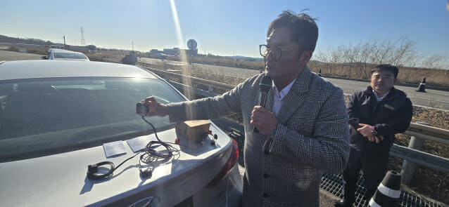 최재혁 TS 화성교통안전체험교육센터 교수가 페달오조작 방지장치 구성품을 설명하고 있다.
