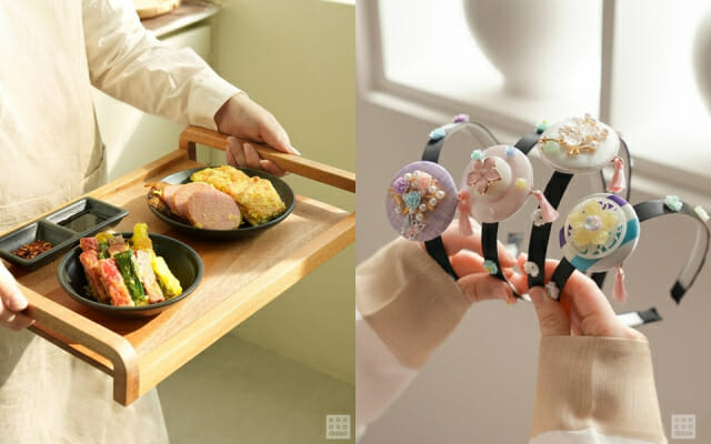 또 명절 인증샷을 찍기 좋은 ▲나비 태슬 장식 ▲전통꽃 머리띠 ▲가체 머리띠 등 전통 액세서리도 마련했다.
