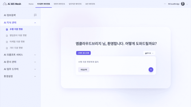 엠클라우드브리지는 기업용 AI 플랫폼 ‘Ai 365 지식관리 에이전트’가 최근 제조·서비스·전문직군을 중심으로 구축 문의와 실제 도입이 빠르게 늘고 있다고 10일 밝혔다.
