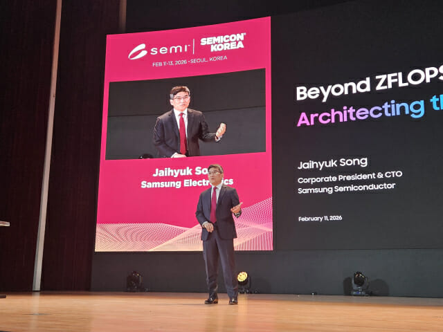 송재혁 삼성전자 CTO(사장)는 11일 서울 코엑스에서 열린 ‘세미콘 코리아 2026’ 기조연설에서 ‘비욘드(Beyond) ZFLOPS: AI 시스템의 미래 아키텍팅’을 주제로 삼성의 차세대 반도체 로드맵을 발표했다.