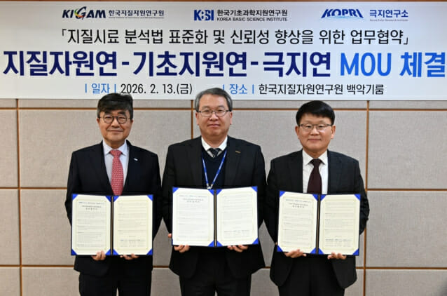 이들 3개 기관은 지질시료 분석법 표준화 및 신뢰성 향상을 위한 업무협약(MOU)을 13일 체결했다.