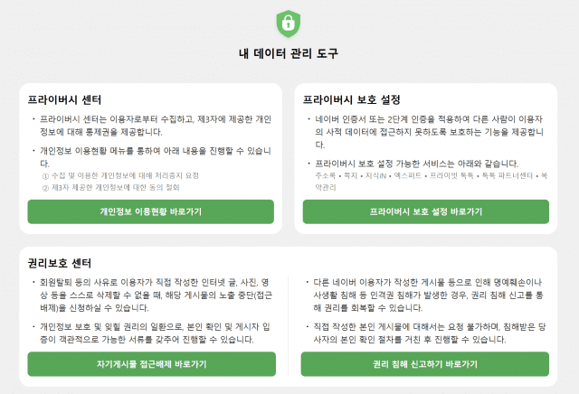 네이버 고객센터 내부의 내 데이터 관리 도구 (사진=네이버 홈페이지 캡처)
