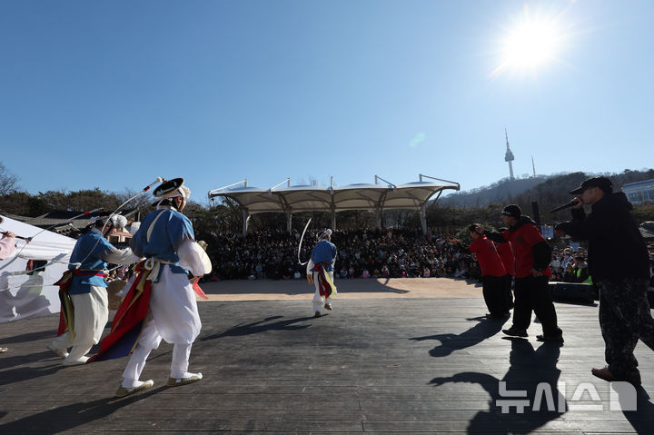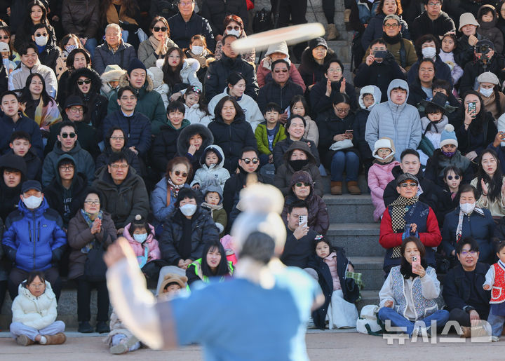 [서울=뉴시스] 황준선 기자 = 설날인 17일 서울 중구 남산골한옥마을을 찾은 시민들이 2026 남산골 설축제 공연을 관람하고 있다.
