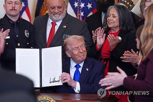 ‘불법체류 살인범죄 피해 가족의 날’ 지정 포고문 서명한 트럼프[워싱턴 AP=연합뉴스. 재판매 및 DB 금지][워싱턴 AP=연합뉴스. 재판매 및 DB 금지]도널드 트럼프 미국 대통령이 불법체류자의 살인 범죄로 인한 피해자 가족들을 위한 ‘천사 가족(Angel Family)의 날’을 2월 22일로 지정했습니다.