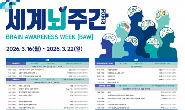 한국뇌신경과학회(KSBNS, 회장 이창준)는 한국뇌연구원과 공동으로 오는 3월 16일부터 22일까지 세계적인 뇌과학 축제인 ‘2026 세계 뇌주간’ 행사를 개최한다.