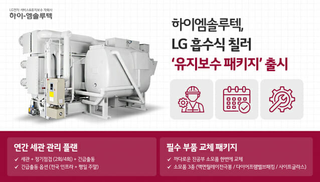 LG전자 냉난방공조(HVAC) 유지보수 전문 자회사 하이엠솔루텍은 LG 흡수식 칠러를 대상으로 한 ‘흡수식 칠러 유지보수 패키지’ 신상품을 출시했다고 25일 밝혔다.