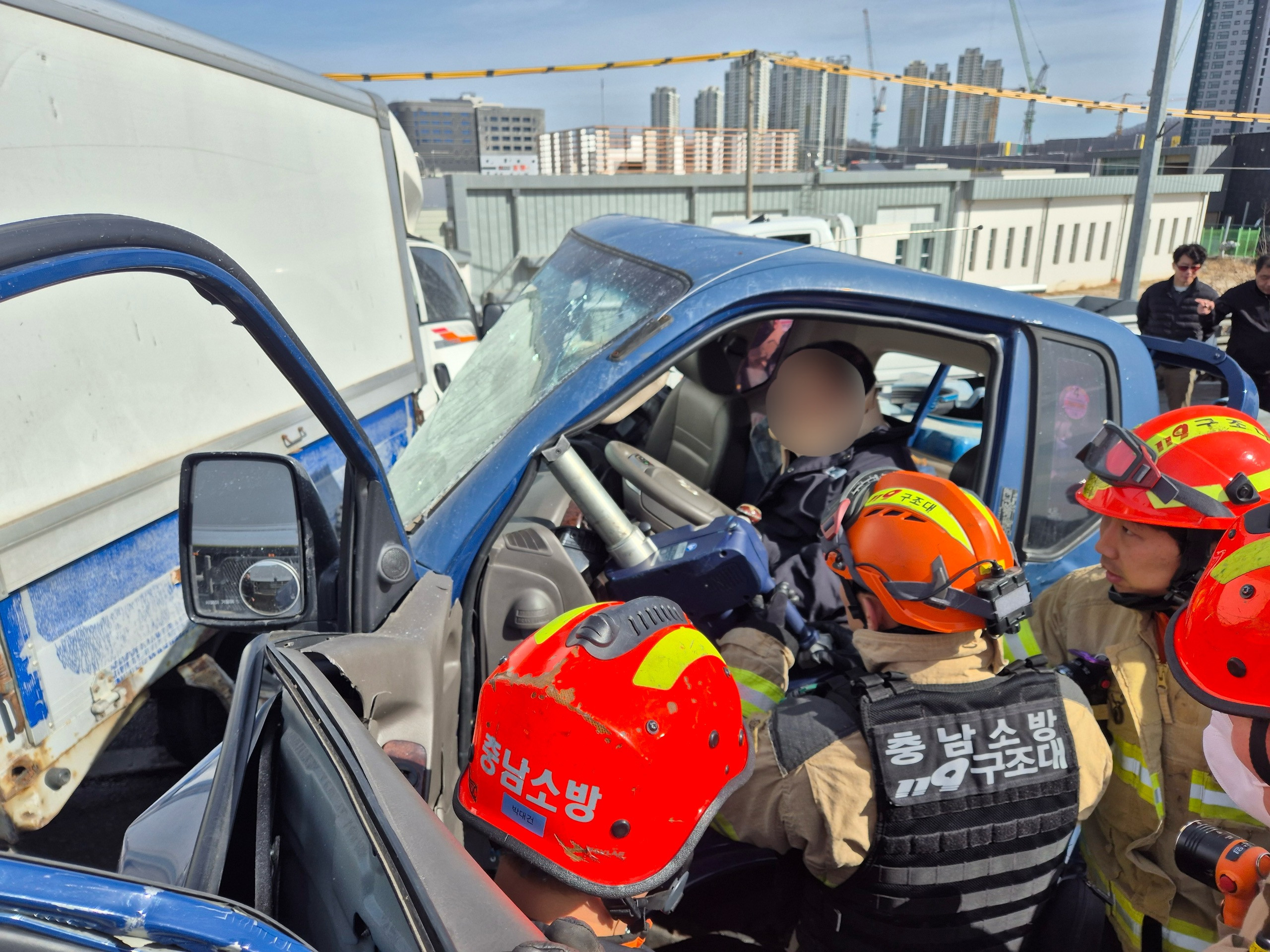 이 사고로 화물차 운전자가 차량에 끼여 소방 당국에 구조되는 등 2명이 중경상을 입고 병원으로 옮겨졌습니다.
