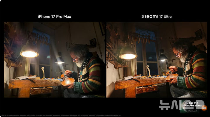 이와 달리 샤오미 17 울트라에 적용된 LOFIC 기술은 각 픽셀에 ‘추가 저장 공간’을 둬 빛 정보를 더 많이 담을 수 있도록 설계됐다고 강조했다. 그는 “같은 장면을 촬영해도 불꽃의 질감과 색 정보가 그대로 살아 있다”며 차이를 부각했다.