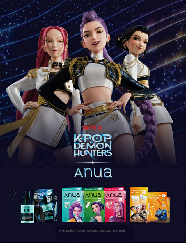 아누아 관계자는 “이번 기획세트는 아누아의 핵심 효능 라인과 글로벌 메가 히트작 케이팝 데몬 헌터스를 결합해 경쟁력을 갖춘 것이 특징”이라며 “앞으로도 유수의 글로벌 파트너와 협업하며 브랜드 인지도를 강화하고, 고객에게 차별화된 브랜드 경험을 제공해 나가겠다”고 밝혔다.