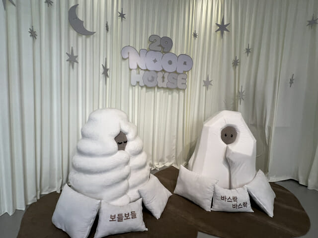 그 다음으로 29CM는 3층에 눕 체험존을 마련하고 실제 수면 환경을 구현한 대규모 체험 공간을 꾸몄다. 이곳에서는 침대 총 13개를 배치해 관람객이 누워 휴식을 취하거나 침구를 만져볼 수 있다. 단순히 만져보는 것에서 끝나지 않고 직접 침대에 누워서 침구 촉감을 느껴볼 수 있다는 점이 큰 장점으로 작용했다.
