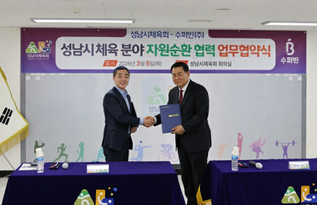 수퍼빈은 성남시체육회와 성남시체육회 회의실에서 ‘성남시 체육 분야 자원순환 협력 업무협약’을 체결했다고 5일 밝혔다.