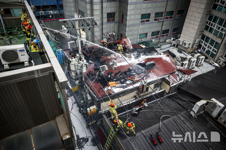 [서울=뉴시스]신유림 조성하 기자 = 서울 종로구 귀금속거리에서 발생한 화재가 약 3시간 만에 완전히 꺼졌다.
