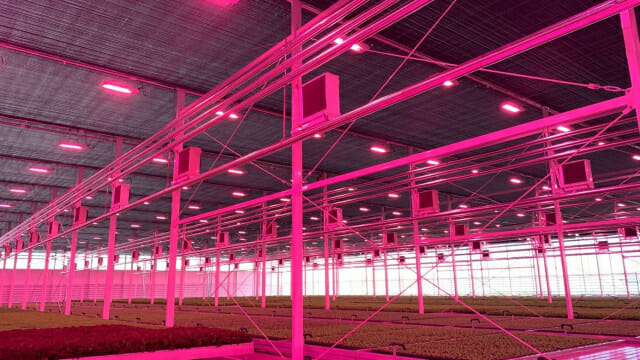 필립스 그린파워 LED 탑라이팅컴팩트를 도입한 우듬지팜 엽채류 육묘 온실 (사진=시그니파이)