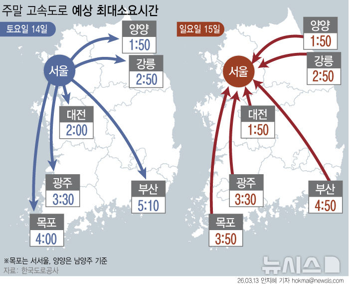 [서울=뉴시스]이태성 기자 = 14일 토요일은 기온 상승으로 전국 교통량이 지난주보다 소폭 증가할 것으로 전망된다.