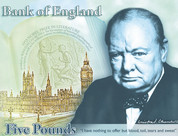 현재 영국 지폐에는 윈스턴 처칠 전 총리(5파운드), 소설가 제인 오스틴(10파운드), 화가 JMW 터너(20파운드), 수학자 앨런 튜링(50파운드) 등이 새겨져 있다.