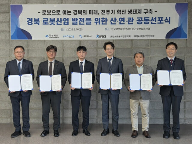 이번 선포식에는 경상북도, 포항시, 구미시 등 지자체와 KIRO, 포항·구미 AI로봇기업협의회 관계자 약 20명이 참석했다. 이들은 지역 로봇 기업 성장 지원과 미래 전략 분야 중심 산업 고도화를 위해 지속적으로 협력하기로 했다.
