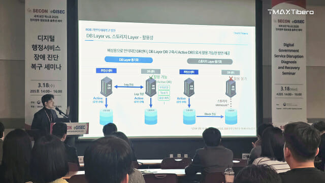 김준형 티맥스티베로 컨설턴트는 “공공 시스템의 안정성 요구 수준이 높아지면서 재해복구 체계도 근본적인 전환이 필요하다”며 “데이터베이스 중심 접근은 기술적 안정성과 비용 효율을 동시에 확보할 수 있는 현실적인 대안”이라고 말했다.